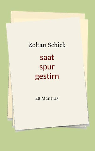 Mantras sind Hilfen im Gebet, die, wenn man sie nutzt, ihre sprachliche Form lösen. Die in Zoltan Schicks Band "saat spur gestirn" gesammelten 48 Mantras verzeichnen Pflanzenarten, Fahrzeugtypen und Himmelskörper.