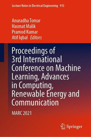 This book gathers selected papers presented at International Conference on Machine Learning, Advances in Computing, Renewable Energy and Communication (MARC 2021), held in Krishna Engineering College, Ghaziabad, India, during 10 – 11 December, 2021. This book discusses key concepts, challenges and potential solutions in connection with established and emerging topics in advanced computing, renewable energy and network communications.